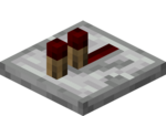 Redstone dust acts as a wire, transmitting redstone power through it. Unlike the real world, there is infinite power that lasts forever once a power source is placed, although as it travels through the wire it gets duller and duller until 15 blocks later the signal disappears.